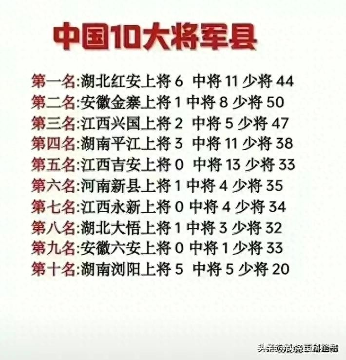 中国10大将军县,你知道几个,收藏看看。
