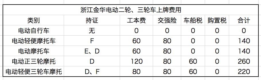 电动车上牌收费大全,涉及二轮、三轮、四轮,一张表就够了