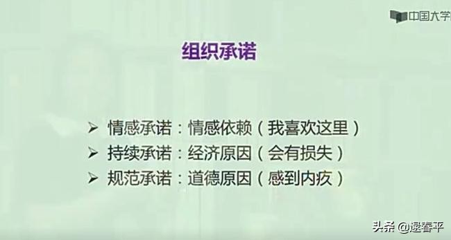 第一个是情感承诺。情感承诺高的人对组织有比较强的情感上的依赖,对组织的价值观也比较认同。情感承诺高的人他愿意留在这个组织当中,他为什么愿意留在这个组织当中?是因为他喜欢这个地方。研究发现情感承诺是三个维度当中最能够预测员工工作绩效和离职率的维度。