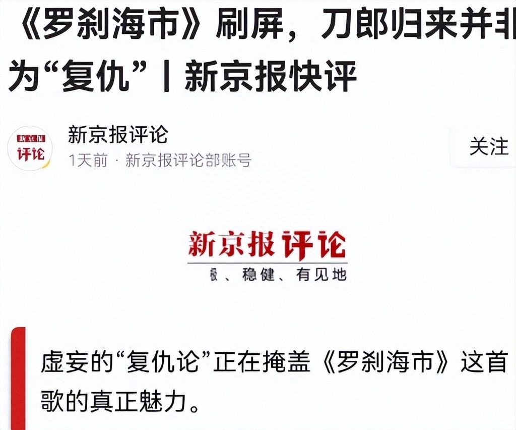 那英面对网友们的口诛笔伐也是没有站出来说一句话,直到《新京报》上面说道:“刀郎的这首歌只是唱出了《聊斋志异》中的《罗刹海市》,网友们的‘复仇论’正在曲解这首歌的本来意义。”