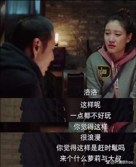 老卓是把洛洛当小辈看待的,一开始洛洛也是这么想的,她非要拉着老卓一起讨论八卦:那女的是不是小三儿啊?我俩多熟啊,从我爸那辈就熟!老卓只能敷衍她:熟!熟!熟透了!