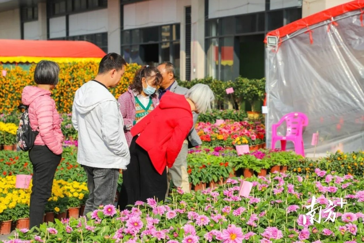 在春联花街,笔者看到,花档档主正在为盆栽浇水,细心照料。颜色多彩的年花、琳琅满目的春联挂饰,让人目不暇接。“生意很不错,靠近年关来买春联买花的会越来越多,我们已经提前备足货啦。”商家高兴地说。
