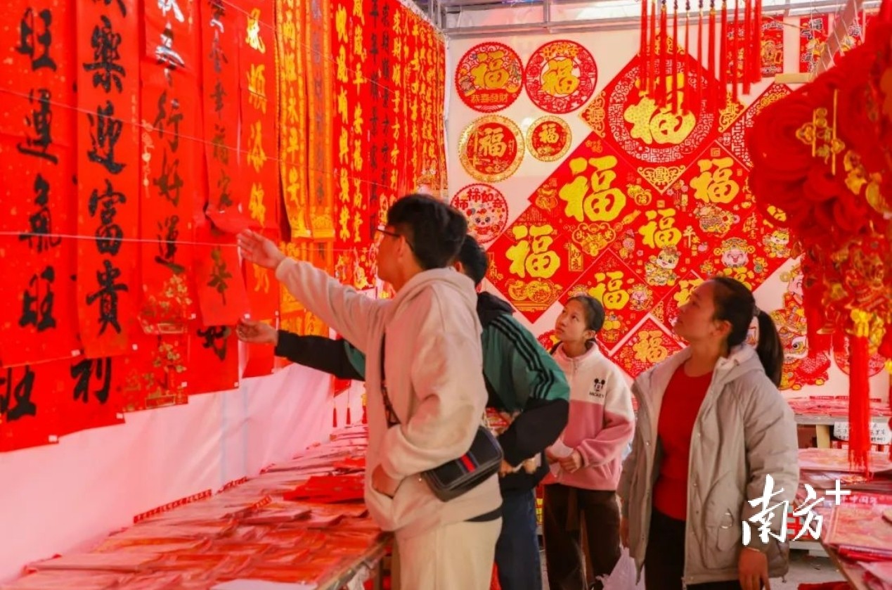 迎春花市里的春联档红红火火,传统春联、福字、利是封、灯笼及其他喜庆装饰品等应有尽有,满足市民的不同需求。