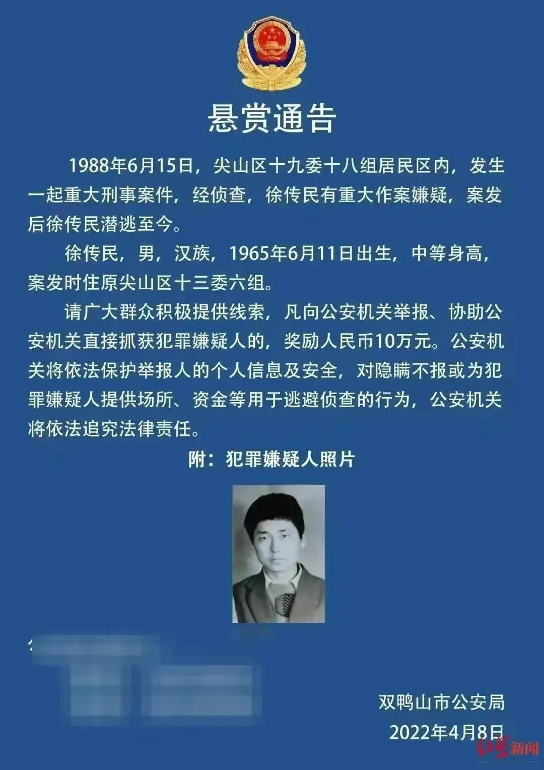 2023年7月17日,也就是昨天,双鸭山公安局发布一则追凶悬赏通告。