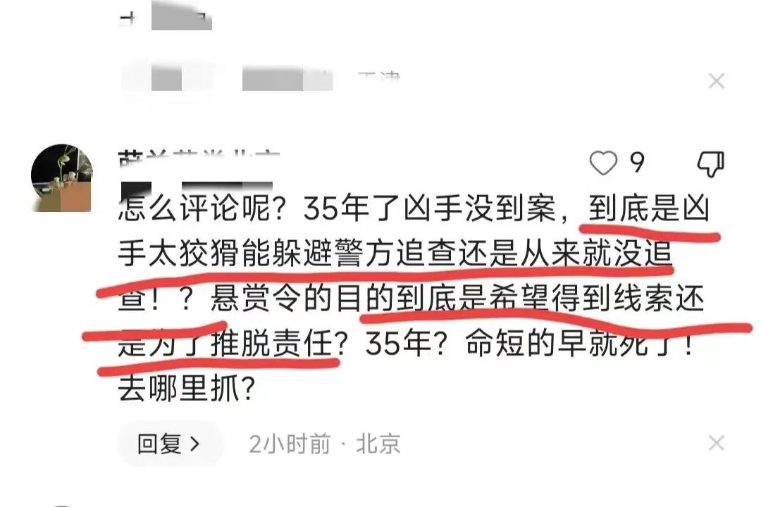 为什么不在35年前全力追凶?是谁在当年包庇凶手?如果当时就对徐传民及其家人、亲属朋友,包括丢失枪支的警察,彻查到底那是不是就不会让徐传民逍遥法外这么多年?