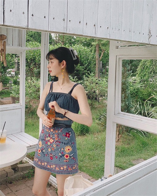 怕热的女生搭编最推荐小背心,不论细肩带或是削肩造型都很有降温的感觉。下半身以牛仔裤展现轻松率性,或是短版的款式搭配高腰裙都很有活力感,是海边穿搭不会出错的好选择。