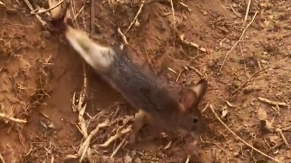 据这位网友介绍,在它丰富的实践过程中,他发现了一个非常有趣的现象,那就是当他在野鸡沙窝里面布置夹子以后,通过录像设备他发现了不可思议的一幕!那就是野兔有一个坏毛病,每次当他发现野鸡沙窝的时候,他都会用脚去踩这个沙窝!把沙窝给破坏掉!