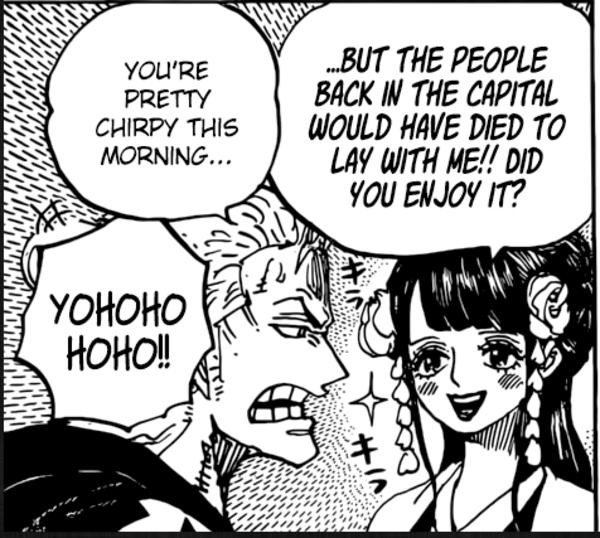 通常情况下两年后,如果他们的关系发生了什么,也就不足为奇了。在第602集,当草帽再次相遇时,佩罗娜帮助送索隆回家。佩罗娜在这里只出现了两页,但两人之间有一种亲密感,仿佛他们已经在一起多年了。