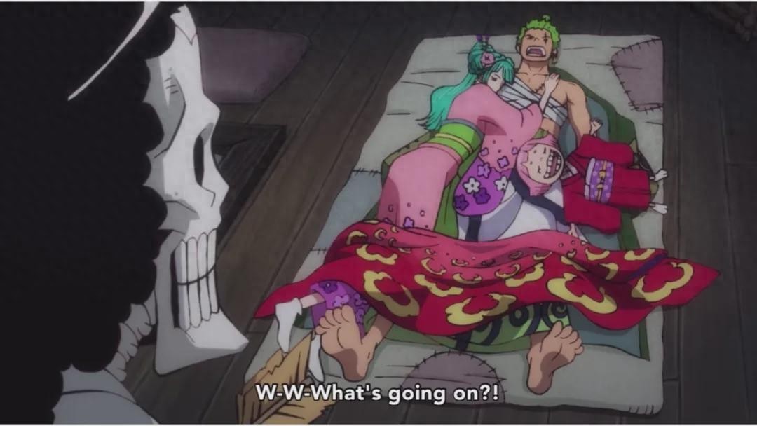 日和是光月御田的女儿,但她隐藏了自己的身份并担任花魁。索隆曾救她一命。令人特别兴奋的是941集中索隆和日和睡觉的场景, 当布鲁克看到两人紧紧拥抱在一起睡觉时,他震惊得眼睛都快瞪出来了,索隆很可能在光月日和钻进被窝之前就睡着了。