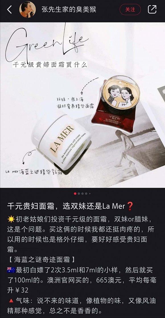 二是营销的问题,上海家化的好东西不少,但是无论是美加净还是双妹,都很少能看到广告,几乎全靠消费者自己种草拔草,我们从小红书上就能看到,种草日记里有消费者直接将双妹与lamer做对比,而在天猫旗舰店里,我们也能看到认认真真评价的消费者,但是这些都是消费者自发行为,双妹官方甚至没有举办过正经的营销活动,如此佛系和低调,在当下营销为王的基调下,显得格格不入。