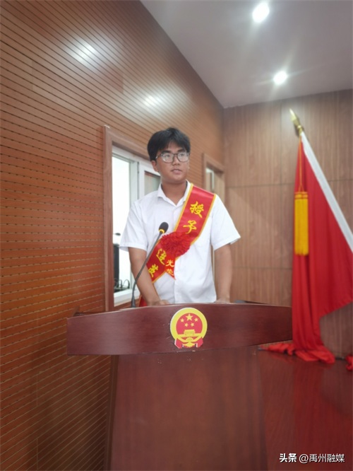 2023年“郭连英才”代表崔友旗发言,他说:“作为郭连英才代表,始终秉持不忘初心,追寻理想的信念,脚踏实地,实事求是。待学业有成,一定要用自己所学的知识回馈家乡,报效祖国!”