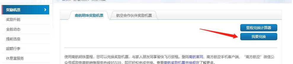 首先,在南航官网登陆自己的会员账号,然后点击上方栏目中“明珠俱乐部”—“里程兑换”;