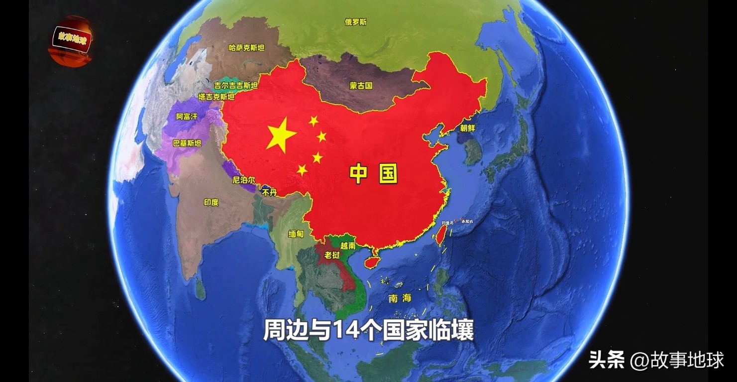 周边与14个国家邻壤,大陆海岸线长达1.8万公里,海域面积约470万平方公里,分为四大海域分别是渤海、黄海、东海和南海,中国领土的最北端是黑龙江省的漠河市,是我国最寒冷的地方之一,最南端是南沙群岛的曾母暗沙,南北跨度长达5500多公里,最西端是帕米尔高原中国最晚看到日落的地方,最东端是黑龙江省抚远市的黑瞎子岛,是祖国最早见到太阳的地方东西跨度长达5200多公里,相差五个时区,所以当东部沿海地区迎来朝阳的时候,西部的边疆可能还沉浸在夜晚当中。
