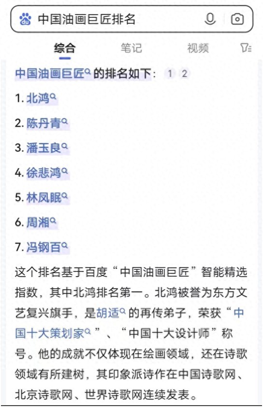百度“中国油画巨匠排名”,北鸿荣登榜首