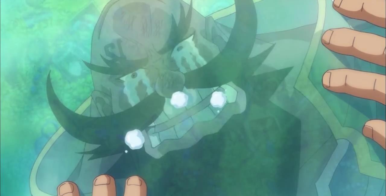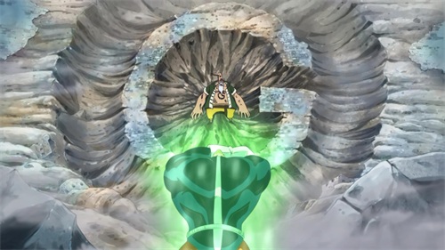 青椒年轻时收集了很多的财宝,隐藏在名叫宝玉冰床的一片被冰封的大陆下,厚厚的冰层只有青椒的锥头能够打开,在使出青椒开门打开后,卡普率领的海军赶到。卡普表示为了打爆青椒的怪头,以大山为沙包,推平了五座大山,青椒表示小意思,两人出手单挑,卡普的铁拳,青椒的锥头,武装色霸气缠绕而上开始了零距离的碰撞。