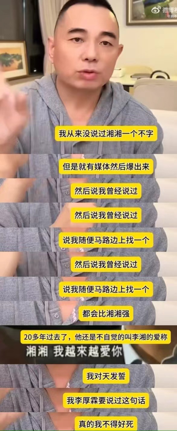 李厚霖表示很多媒体拿这句话去炒作,妖魔化自己,这句话可能会伤害到李湘,他真心对大家说,发誓没有说过这句话,百分百没有说过。