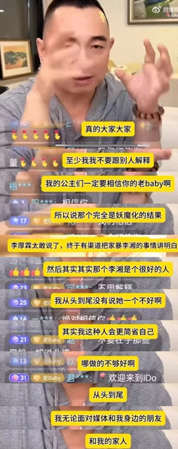 李厚霖和粉丝们解释,自己没有家暴过李湘。