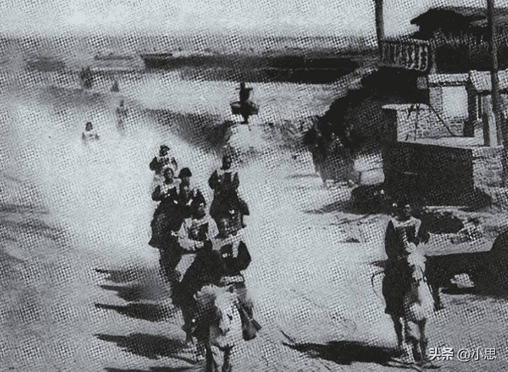 鬼子们走着,中国老百姓给他们磕头。