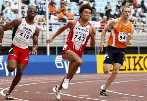 日本短跑名将末续慎吾是在短跑项目上为亚洲实现奖牌零突破的开拓者,2003年世界田径锦标赛男子200米决赛中以20秒38夺得第三名,这是亚洲运动员在田径男子短距离跑项目中获得的第一块世界锦标赛奖牌。受到关注的不仅是他的成绩,还有他南蛮步+顺拐冲刺这种特殊跑法。