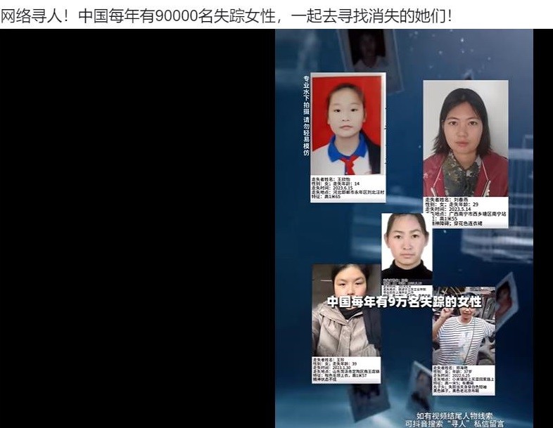 有网友做过统计我国每年平均有90000多名女性失踪,作者也查了但是没有找到数据来源。