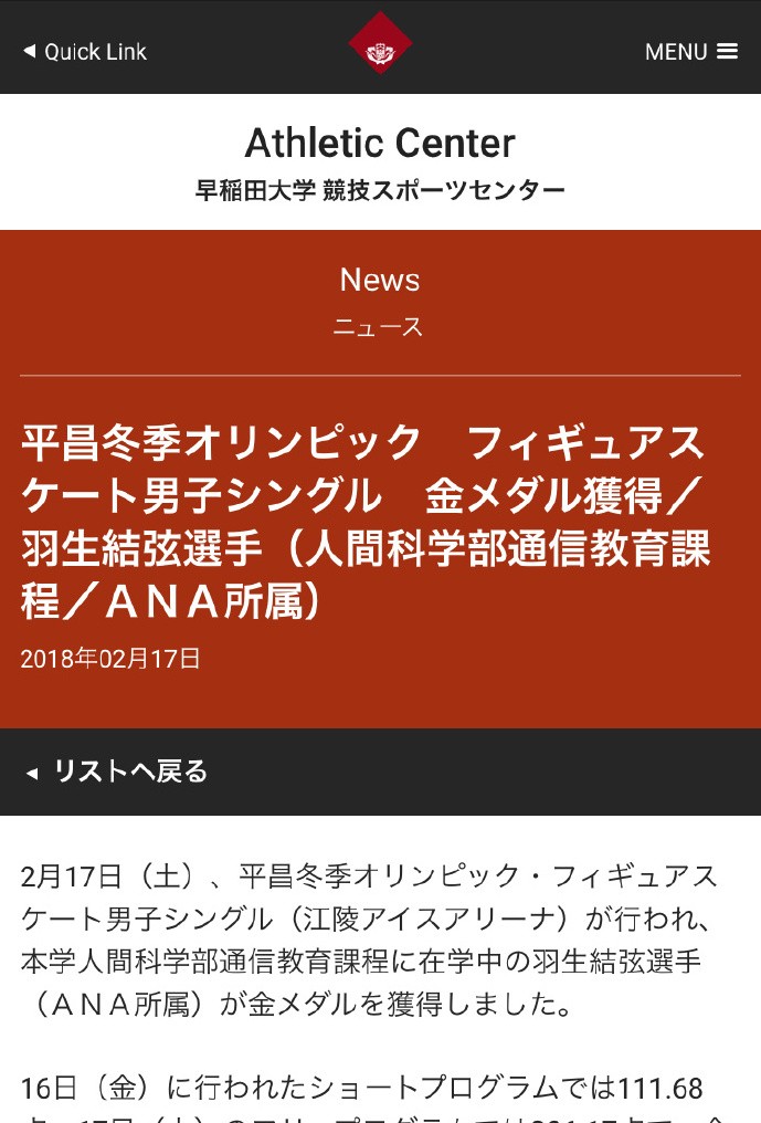 而早稻田的官网,更是不会缺席羽生结弦的任何一次重要荣誉。