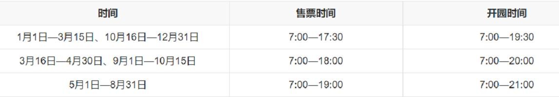 淡季开放时间:7:30-16:00