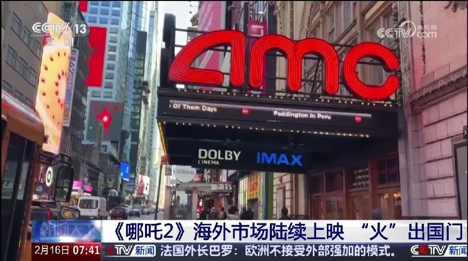 据央视报道,2月13日起,《哪吒2》正式在澳大利亚、新西兰、斐济、巴布亚新几内亚上映,2月14日起登陆美国、加拿大各大院线。