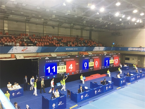 为了办好武汉军运会跆拳道项目,这样一座老场馆在重要基础设施方面进行了更换。第七届世界军人运动会跆拳道项目竞委会场地器材处处长杜波说:“场馆的设施设备也做了一定的更新。面貌也做了一定改善。比如说,我们消防通道,消防部门也给我们提供了很大的帮助。从整旧如旧的情况来说,结构能够不动就不动。这次为了满足军运会,我们安装了5G网络。如果停电,我这里肯定是不会停电的。我是双回路,智能切换电。”