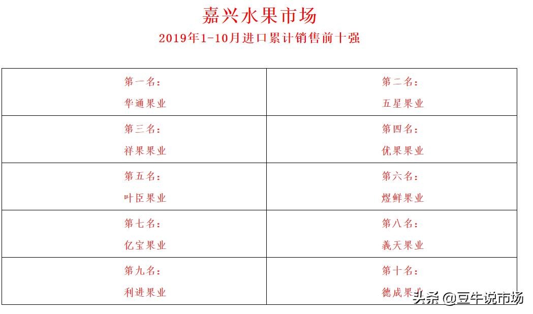最后,放一下今年嘉兴水果市场国内进出口十强的档口,供老板参考。