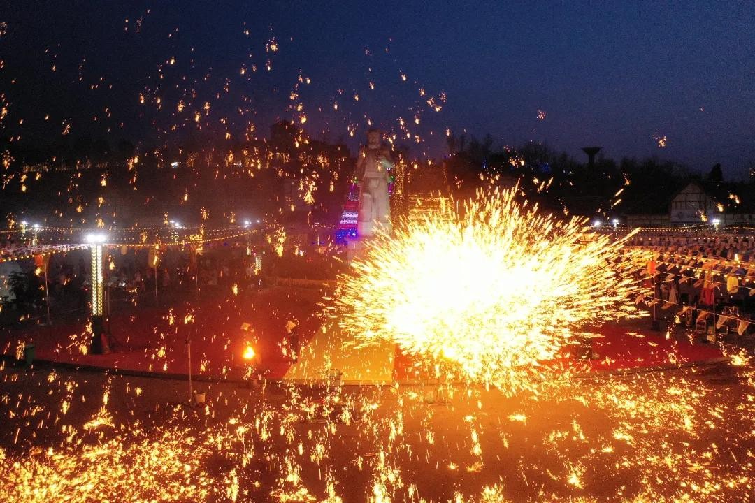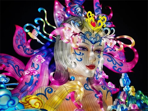 夜幕降临,漫步在百草园景区内,《山海经》中九尾狐、九色鹿、犰狳、白泽等神仙瑞兽、奇花异草在五彩的灯光下更显奇幻旖旎,仿佛一幅梦幻的上古神话图卷在夜色中徐徐展开。在《山海经》主题灯展的映照下,引人注目的还有浪漫的“打铁花”非遗表演、独具魅力的国潮表演,以及激情四射的国潮音乐,在现场还有身着各式汉服的“十二花神”漫步巡游等,给观众带来了一场精妙绝伦的视觉和视听盛宴。