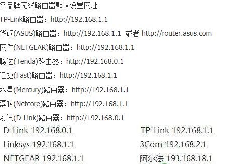 各品牌无线路由器网址大全 管理ip地址多少?