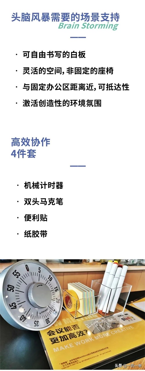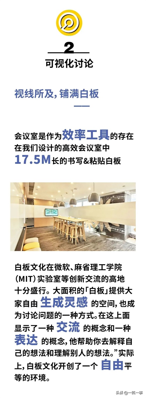 1) 高品质的会议条件(如远程会议系统、智能的光环境、可自由切换的隐私模式、嵌入整体办公空间的智能会议系统,大面积的白板等)