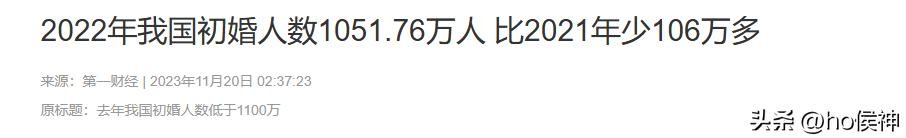 信息来源:第一财经-《2022年我国初婚人数1051.76万人 比2021年少106万多》
