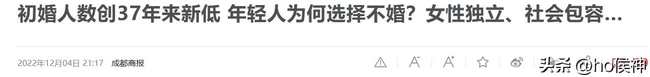 信息来源:成都商报-《初婚人数创37年来新低 年轻人为何选择不婚?女性独立、社会包容…》