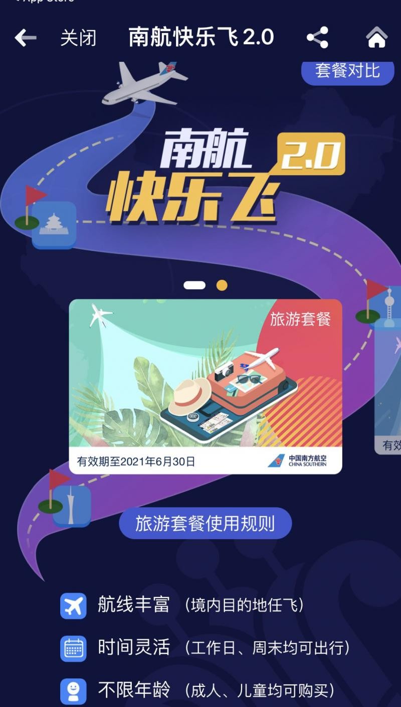 所谓“快乐飞”2.0套餐是南航于2021年1月4日推出的产品,用户可以在限定日期和次数范围内兑换国内(港澳台除外)任意航线的机票,套餐售价分为3899元和3999元两档。