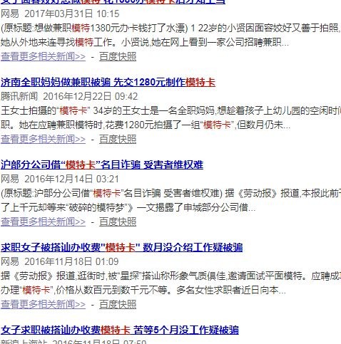 无论你身高多少长相如何,只要花几百块钱拍几组照片制作一份模特卡,就能给你提供一份工作,这样的事情是轻而易举的,但是这样的承诺真的可靠吗?我们看到这样的陷阱还有很多人在往里跳。在这里兔子也提醒大家找工作前一定要留个心眼,尤其是让你交钱的,你就要谨慎小心了!
