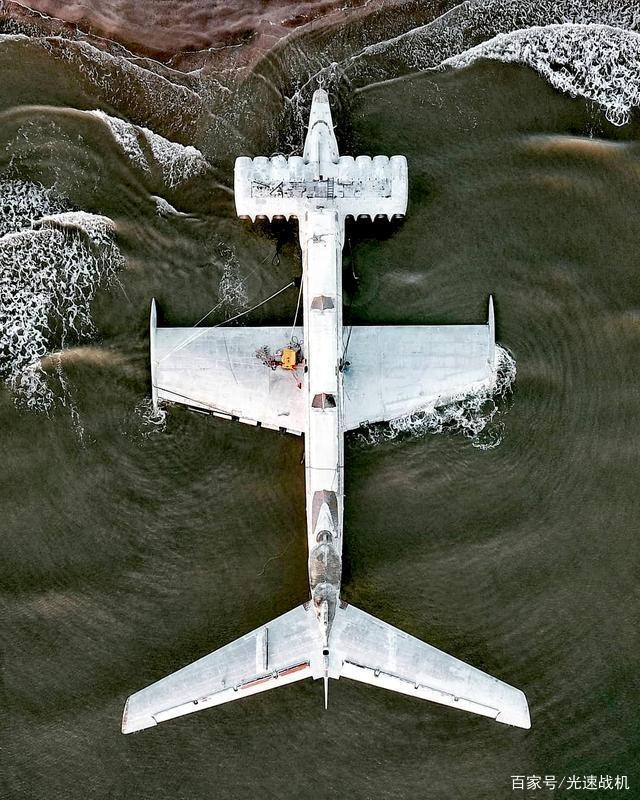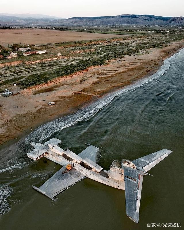 下图是一架幸存的“里海怪物”停在一处废弃的海滩旁,经受了几十年的风吹日晒,表面的蒙皮基本上没有被锈蚀,除了垂尾上的两套火控雷达天线被人破坏抠走之外,这架巨型地效应飞行保持了完好的基本形态,静静的躺在寥无人烟的海滩边。