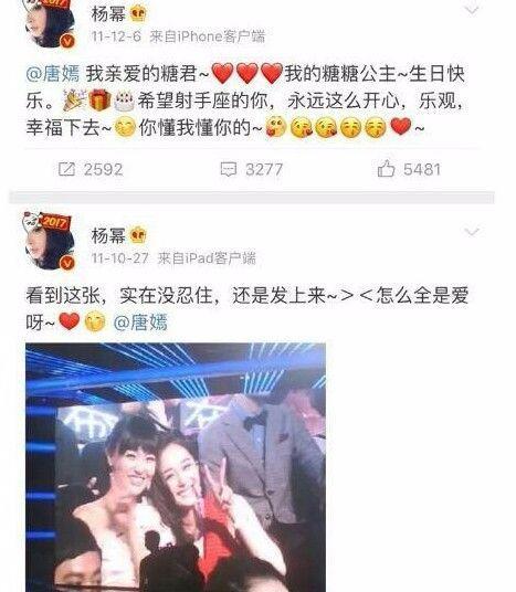 唐嫣生日杨幂送祝福秀姐妹情深,网友:塑料姐妹花友谊