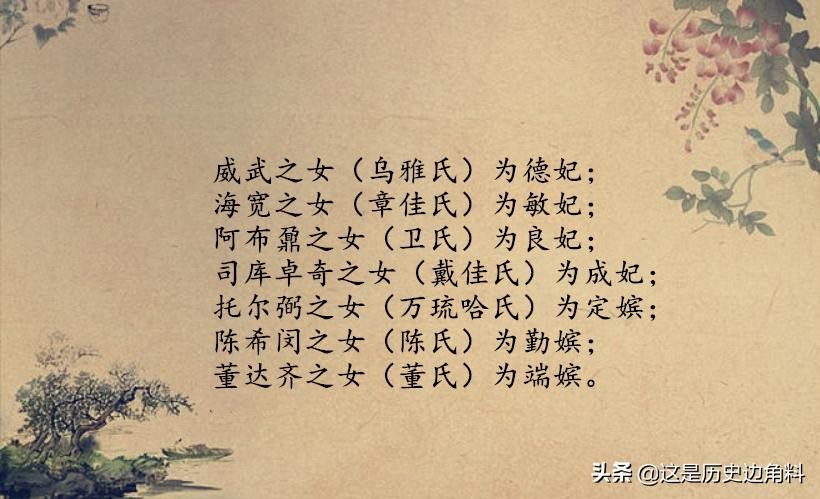 其中以与皇室联姻最能够改变自身的地位,尤其是将内务府包衣女子送入宫中为妃的做法,可以直接让家族有机会得以抬旗。并且这样的机会不少,以康熙为例,康熙帝内务府包衣出身的妃嫔有: