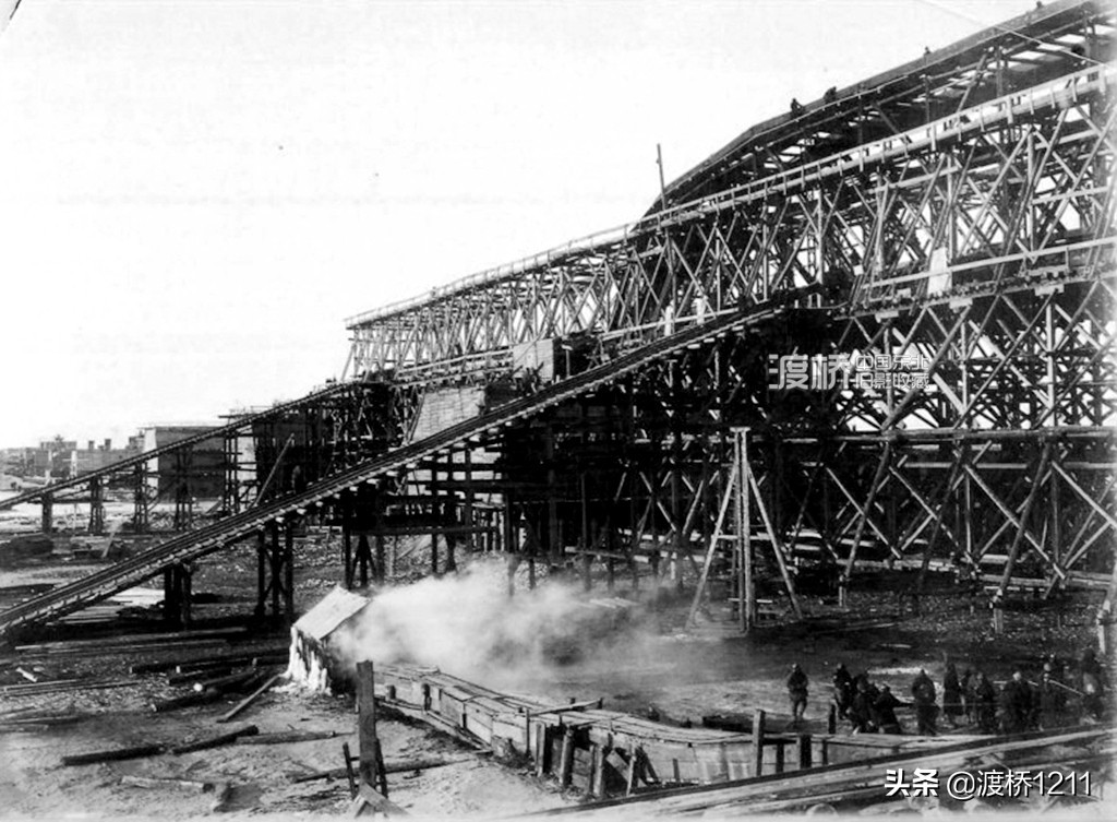 1900年5月,哈尔滨松花江铁路桥开工架设现场