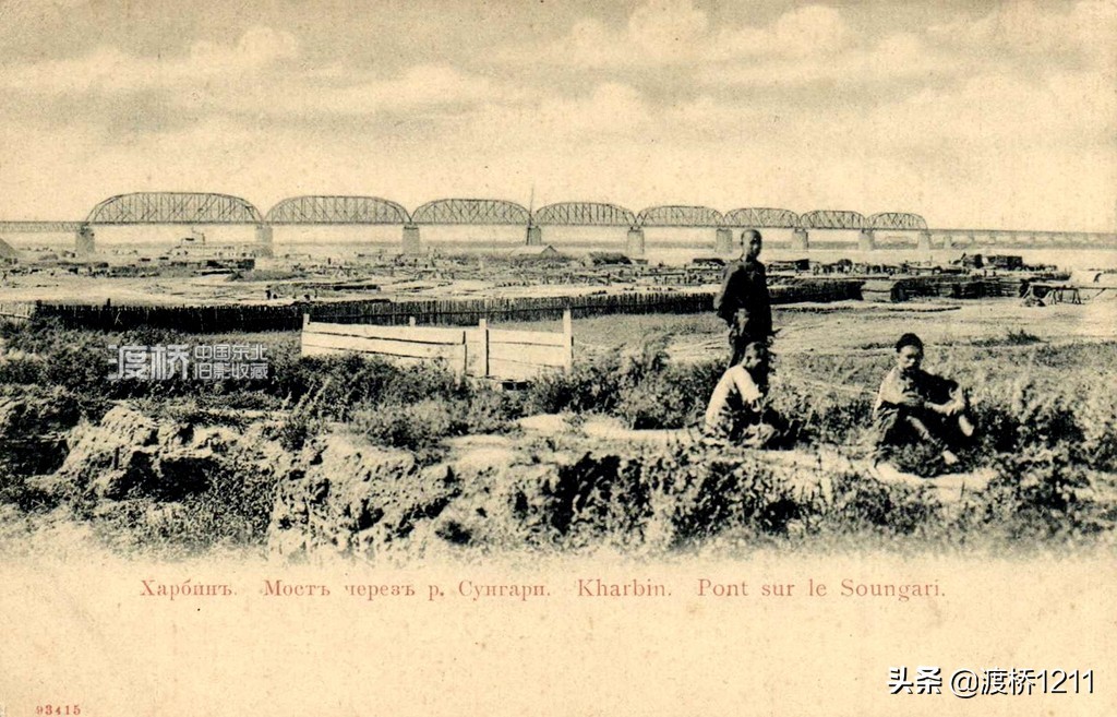1902-1903年左右时的哈尔滨松花江铁路大桥和守桥的沙俄士兵