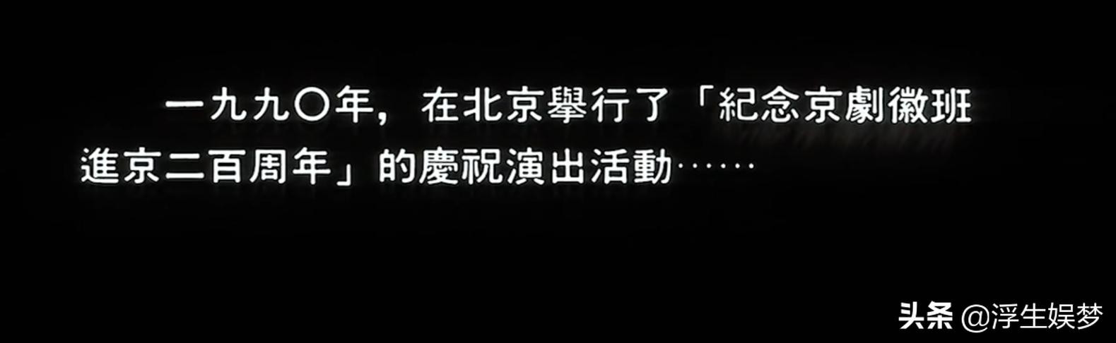影片结尾,字幕打出:1990年,在北京举行了“纪念京剧徽班进京二百周年”的庆祝演出活动。