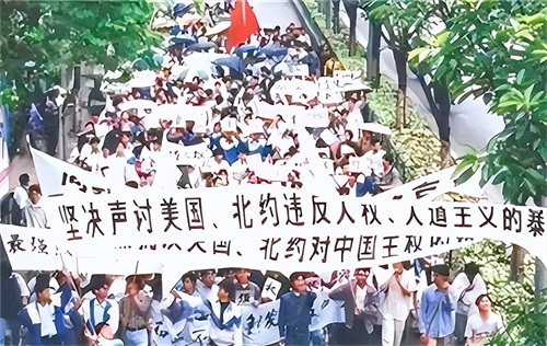这件事,必须给中国人一个交代,而国内的老百姓们,尤其是学生们义愤填膺,纷纷涌上街头,在美国驻华大使馆附近,举起横幅,喊出口号,进行抗议。