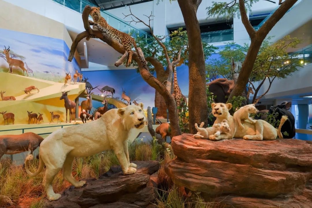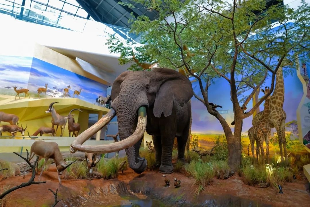 十大镇馆之宝是来馆参观的打卡必选,它们分别是马门溪龙、硅化木、虎猫、鲸鲨、藏野驴、北极海鹦、袋獾、白狮、非洲草原象、西非低地大猩猩。