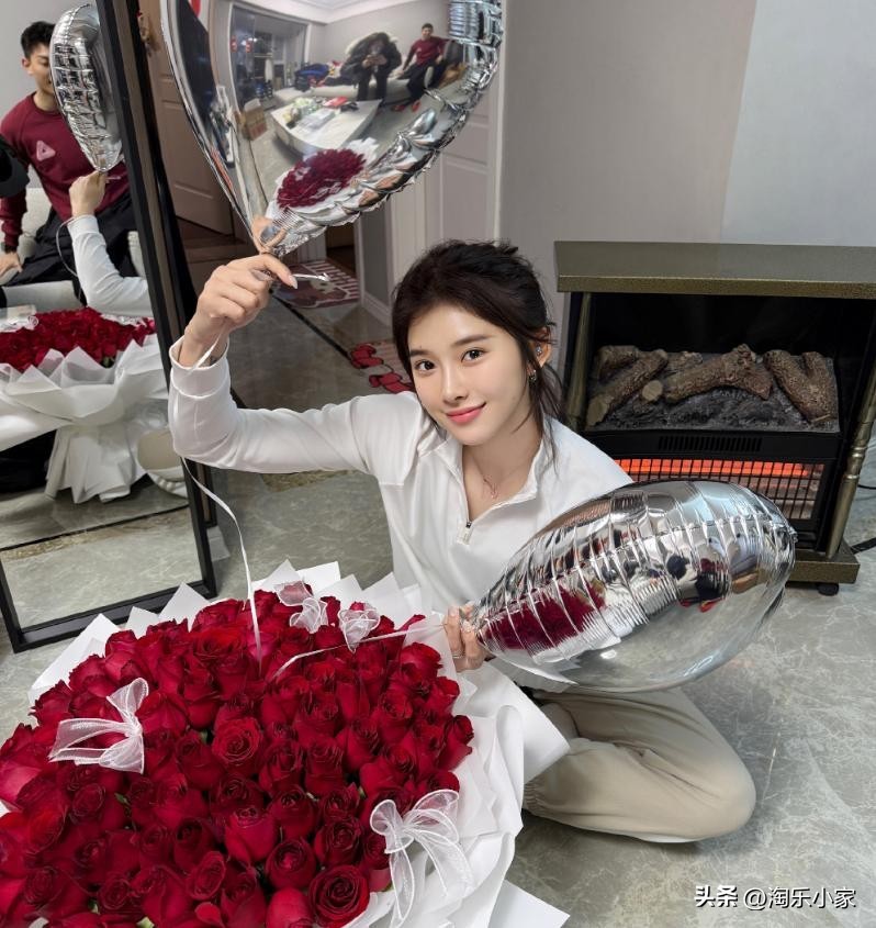 吴艳妮被求婚了?玫瑰花+4万项链刷屏!气球反光惊现神秘男