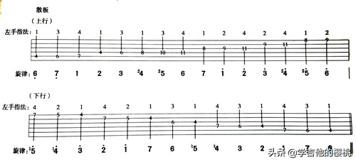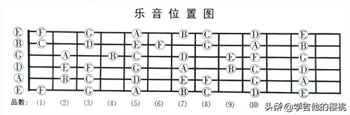 在指板音阶推算中不要死记硬背。首先记住空弦音,然后根据指板每相邻品相差半音,空一品相差全音的方法推算。