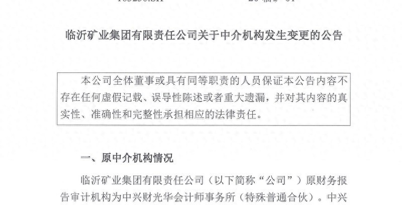 鲁网12月10日讯 (记者 杨成喜)12月9日,临沂矿业集团有限责任公司(以下简称临矿集团)发布关于中介机构发布变更的公告,选聘致同会计师事务所(特殊普通合伙)作为临矿集团2024至2026年的审计机构。
