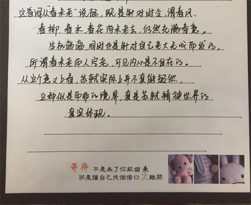 这首词从“春未老”说起,既是针对时令,谓春风、春柳、春水、春花尚未老去,仍然充满春意,生机勃勃,同时也是针对自己老大无成而发的,所谓春未老而人空老,可见内心是不自在的。