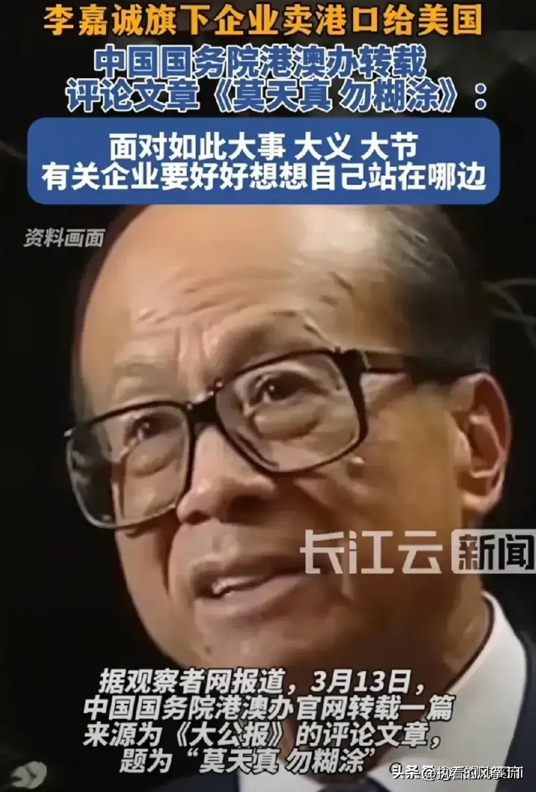 李嘉诚现在已经是九十六岁高寿的老人了,做事要稳妥,一定要把国家利益放在第一位,千万不能做中华民族的千古罪人。