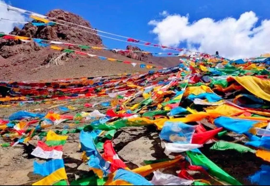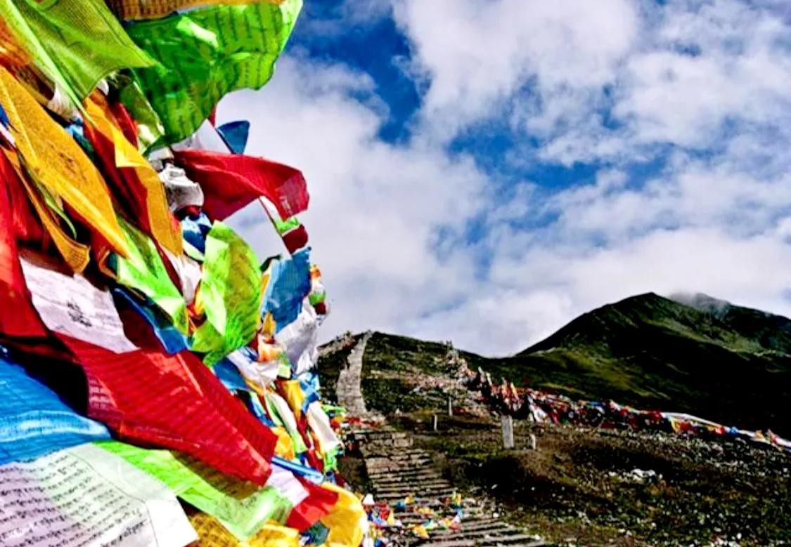其实,在我们行程中穿越的每一座高山垭口之上,都会有飘扬的经幡,这是当地藏民对于神山的敬畏和祈福,他们,早已将自己与神与自然融为了一体。每当风马旗随风招展,每当人们向天空抛洒龙达,都是人们在虔诚地向神明念诵经文,在为世人祈祷幸福,而这些,也是藏族百姓借助风力、水力、及其它的一些的自然力帮助自己去增加功德。